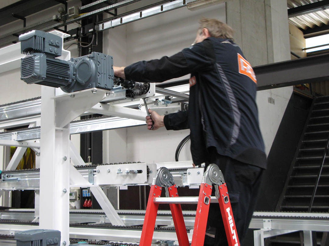 The assembly of the conveyor equipment on site is planned by us and carried out by our own installation personnel. Dates and resources are agreed in advance together with our customer. We finally ensure smooth integration into the production process with commissioning and fine tuning.